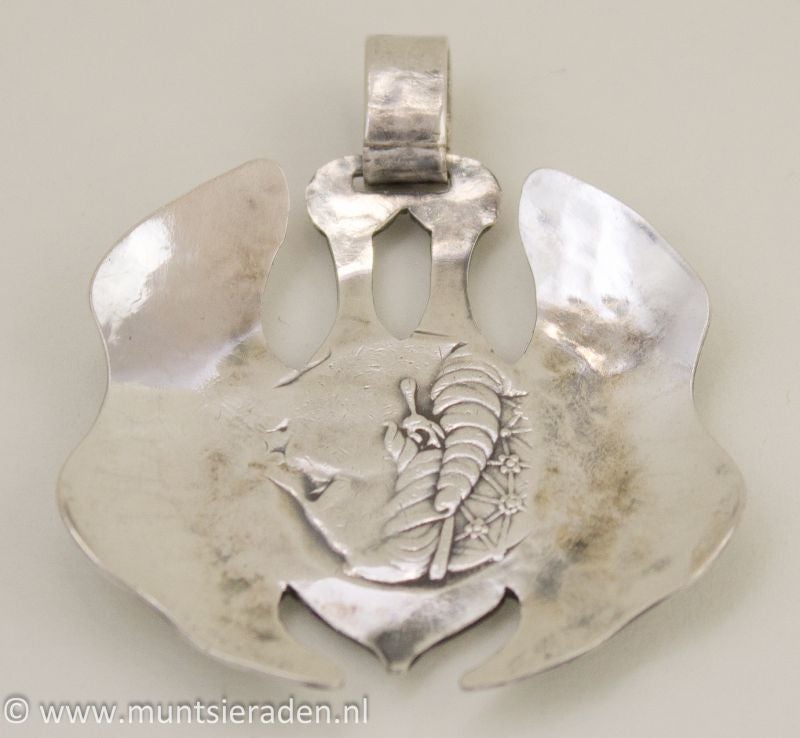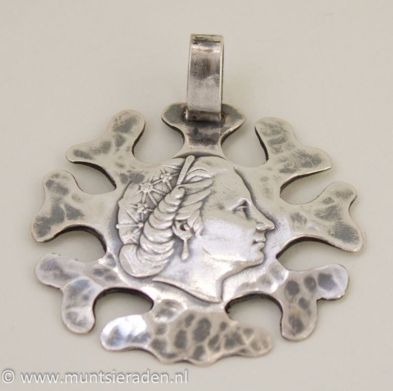 Om de vorm te krijgen is de rijksdaalder bewerkt met een hamer.